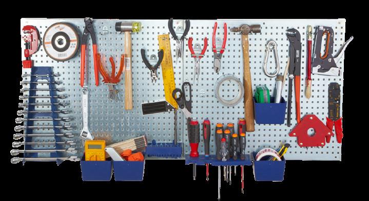 Kogumõõt 1114 x 445mm, metallist. Sein on kahest osast, 1tk= 557x455 mm. Kaasas konksud, karbid, võtme- ja kruvikeeraja hoidjad. NB! Tööriistad ei kuulu komplekti.