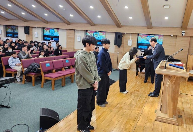 했고, 올해 해파장학생으로 선발된 박가희, 송인호, 장현욱 학생에게 장학증서를 전달하는 뜻깊은 순서 도 이어졌습니다. 선포된 말씀처럼 하나님께서 우리 모두를 귀하게 여겨 주심에 감사하며, 세대를 넘어 서로를 아끼고 사랑하는 신앙공동체로 더욱 자라가기를 소망합니다.