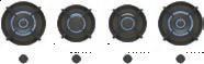 4 vertical gas burners, in line, for use with both NG and LPG, Total power output 15.2 kW.