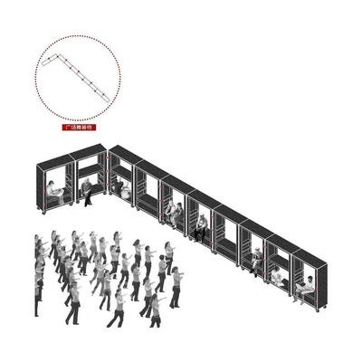 STREET SECTION 10m 6m SCENARIO 1: Personal space SCENARIO 2: Linear art exhibition SCENARIO 3: Pop-Up reading spaces SCENARIO 4: Art workshops SCENARIO 5: Children open theatre SCENARIO 6: Street Cinema 10m SCENARIO4: Artworkshops SCENARIO2: LinearExhibition Reconnecting with the past Shared reading space Linear exhibition with local artists work + glass material for visibility & exposure from the outside as well Street cinema