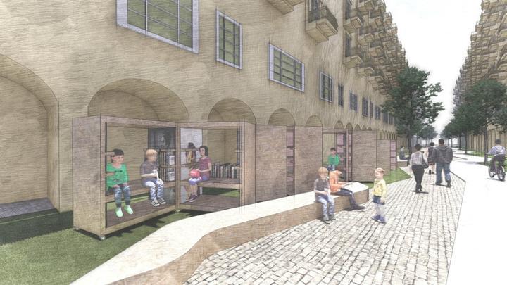 buildings by making a seasonal assembly area for festivals and events.bookshops and bike tires climbing walls