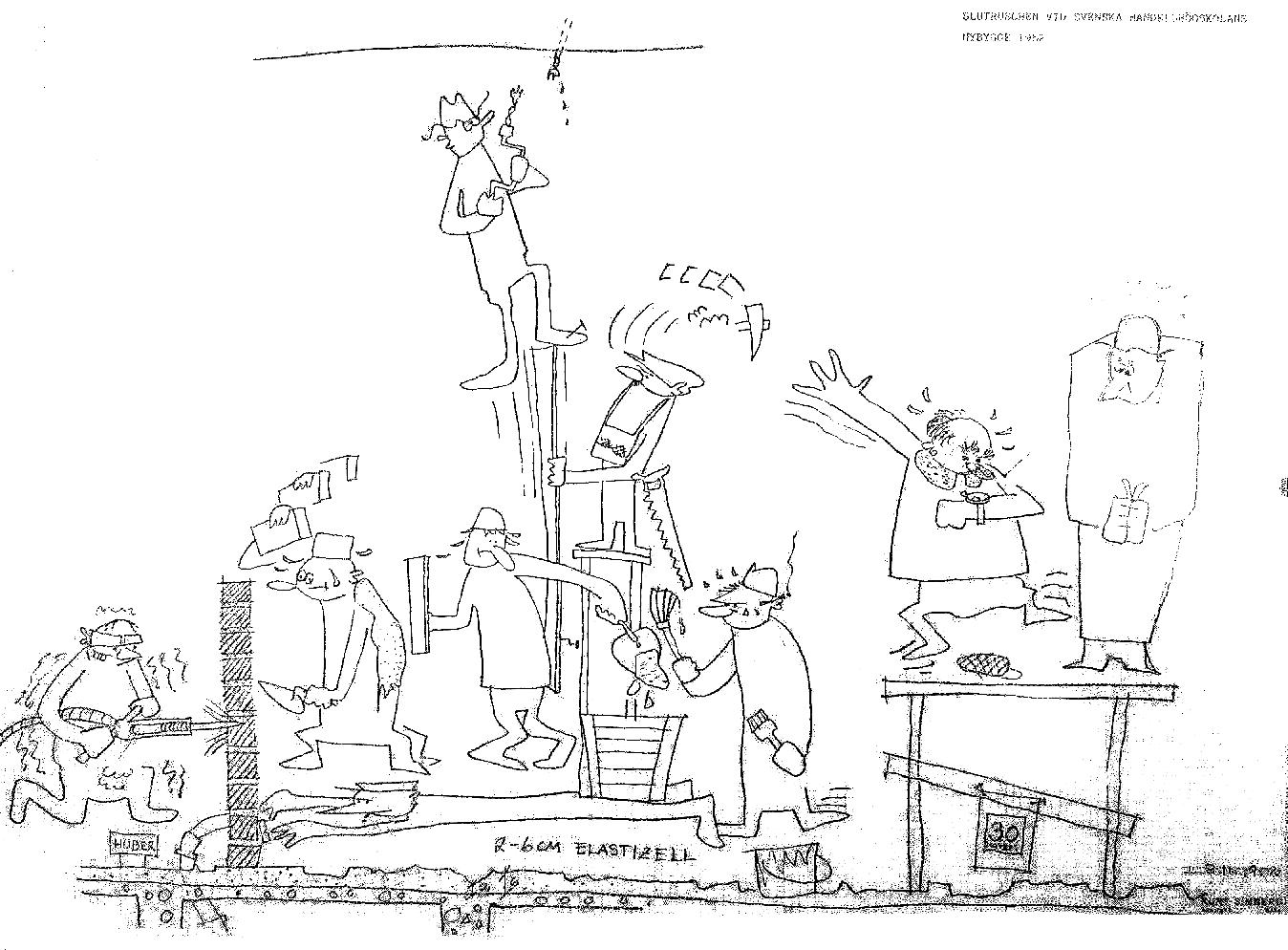 This was the context in which Hanken’s present home was built. The new building was constructed with the help of donations: the student union took part in collecting funds and aid also flowed from international sources. The atmosphere was forward thinking. An architecture competition was organized in 1949, only five years after the end of the war. The winner was architect Kurt Simberg who, having secured his first major public commission, invited a group of leading young Finnish designers to work with him.