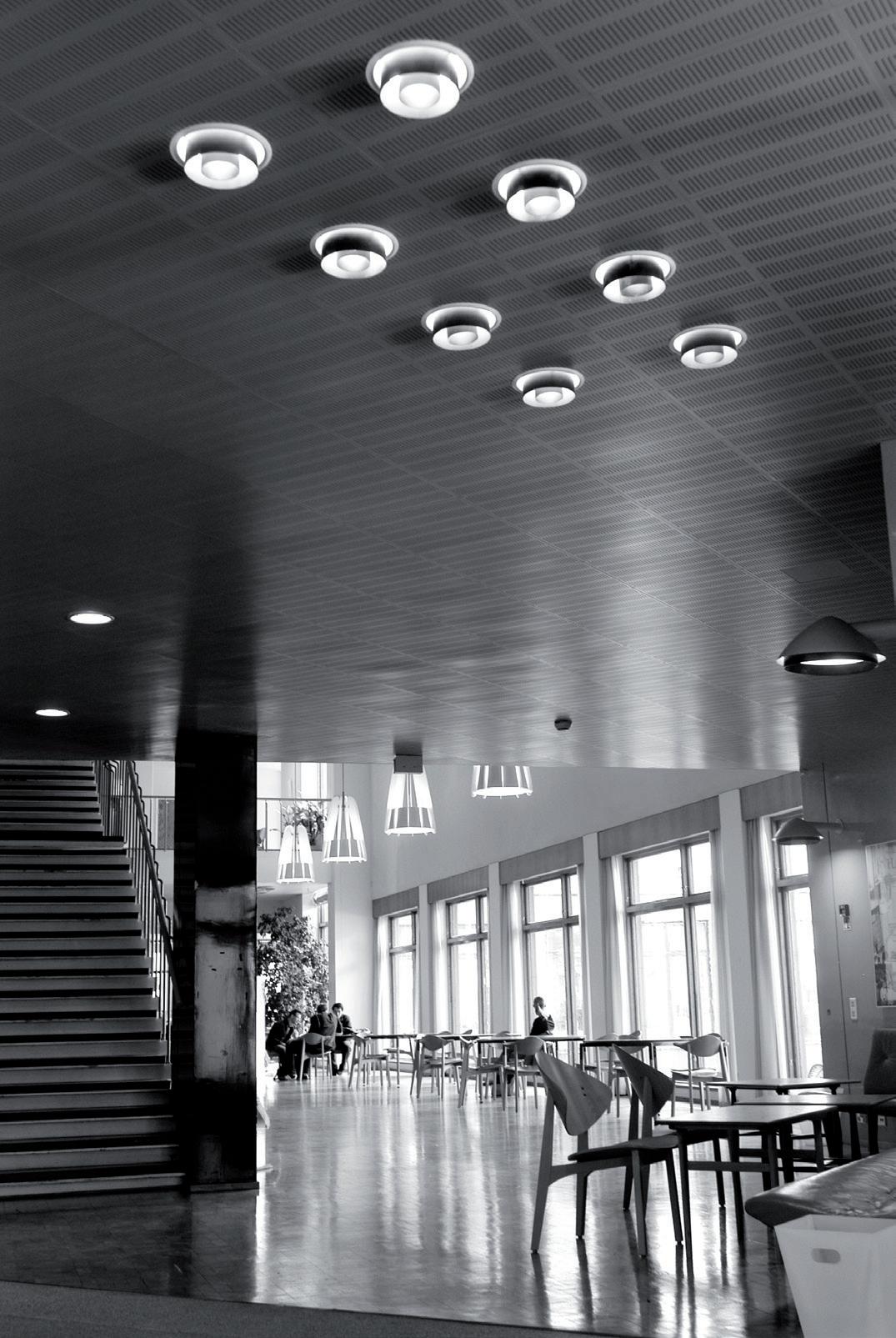 The fifties was in many ways a decade of mature modernism. Focus was on form and function, resulting in classic, durable, and wellthoughtout designs. Young Kurt Simberg created an ultramodern building. He surrounded himself with renowned experts and designers. Paavo Arni, the country’s foremost acoustician, took care of acoustics design, Dora Jung, one of Finland’s leading textile artists, saw to the textiles and Olof Ottelin, one of the most important furniture designers of the 1950s, was in charge of the furniture. Lisa Johansson-Pape, our leading lighting designer, handled the lighting and Yki Nummi, also one of our best known interior artists of the 1950s, designed the indoor colour schemes. The 1950s was a golden age for Finnish design with our designers winning international prizes in all fields of design.