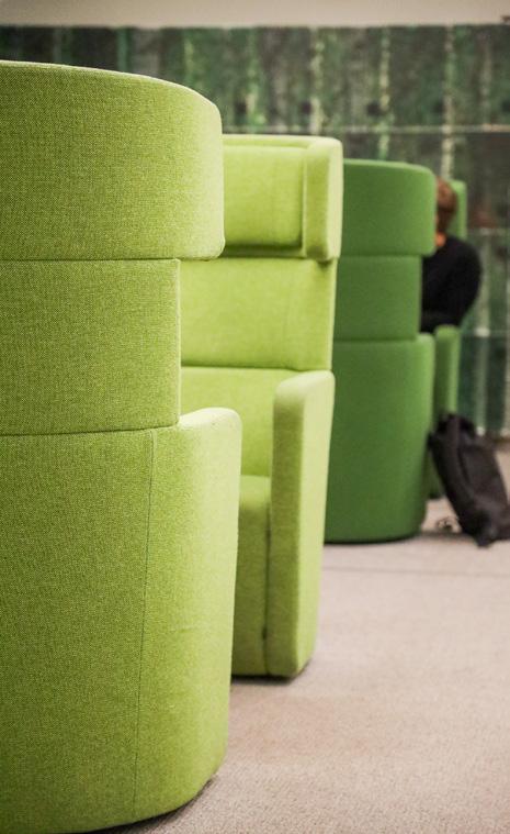 The green element was introduced in 2012 when the library’s monograph room was converted into a comfortable modern reading environment. The idea was to create an even stronger link to the greenery outside, so a green garden became the chosen theme. The former cloakroom was made into a group work facility with dinerstyle group work furniture and a birch forest as an atmospheric element. Torget – Hanken’s Business Lab in the basement –was named after the TV programme “Vi på lilla torget”, which was broadcast from Hanken’s auditorium in the past.