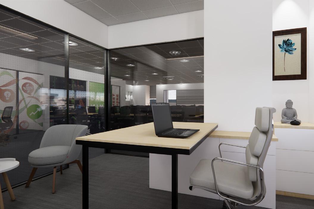 385,63 Laminate door 560 610 15 Drawn in AutoCAD Scale 1:20 on A3 Modelled inSketchUp Rendered in Photoshop Office view from Marketing team's area Office view from Sale Team's area General Manager's room