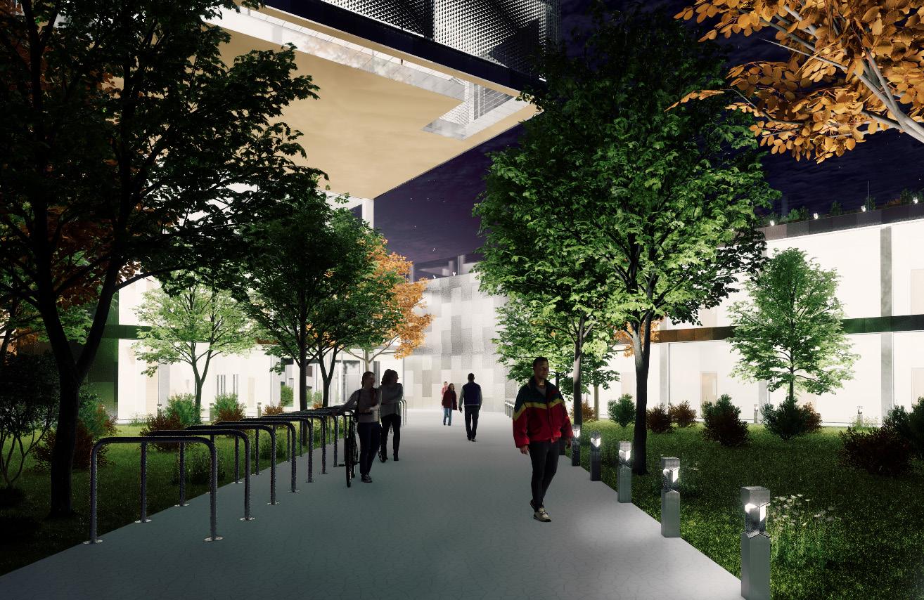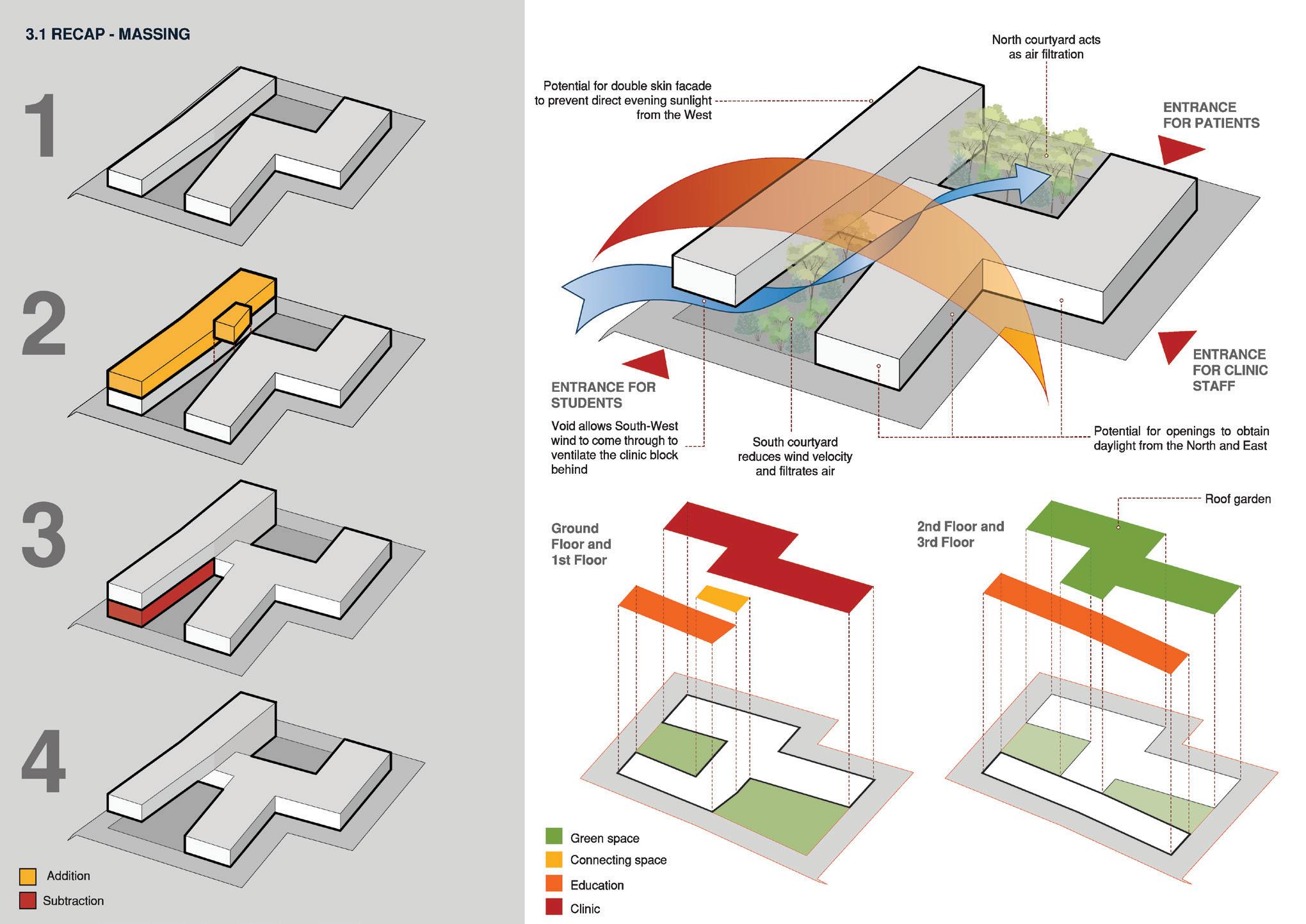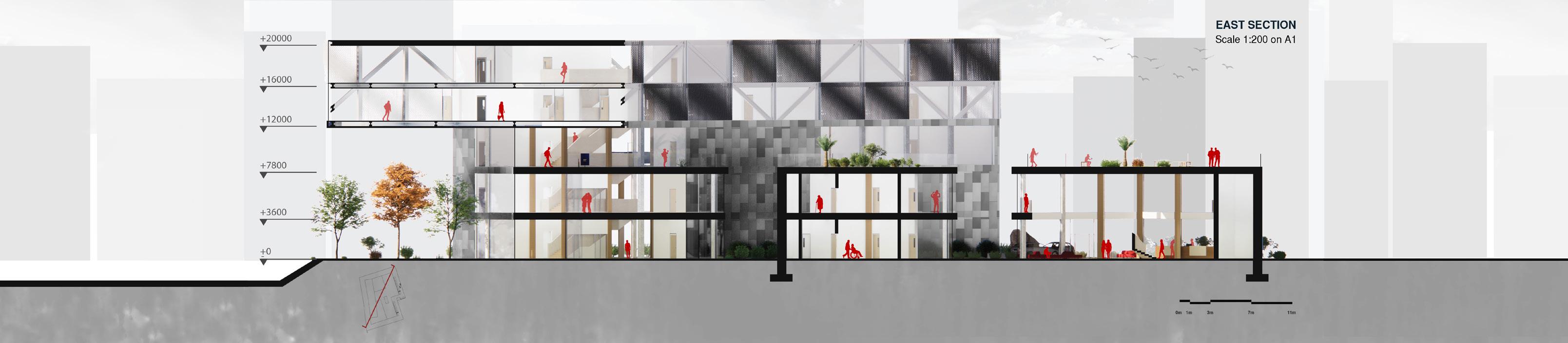 Located in Hulme - Manchester, the brief asks for additional facility of the Health and Education Department of the Manchester Metropolitan University (MMU). The program also seeks to maximise green spaces on-site through the South yard and the roof garden. The roof landscape plays a vital role in delivering the atelier's current theme of "Emergent Biophilic Design", which emphasises the connection between users and the natural elements. The green spaces of the scheme are the connectors that bring the users together, and bringing the project closer to the public in a wider context.