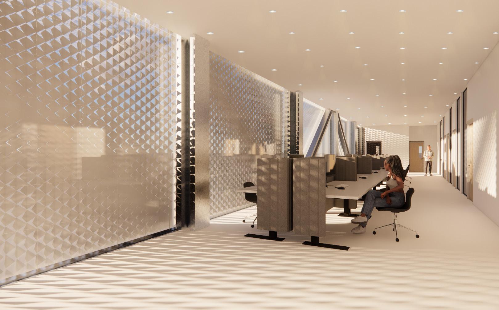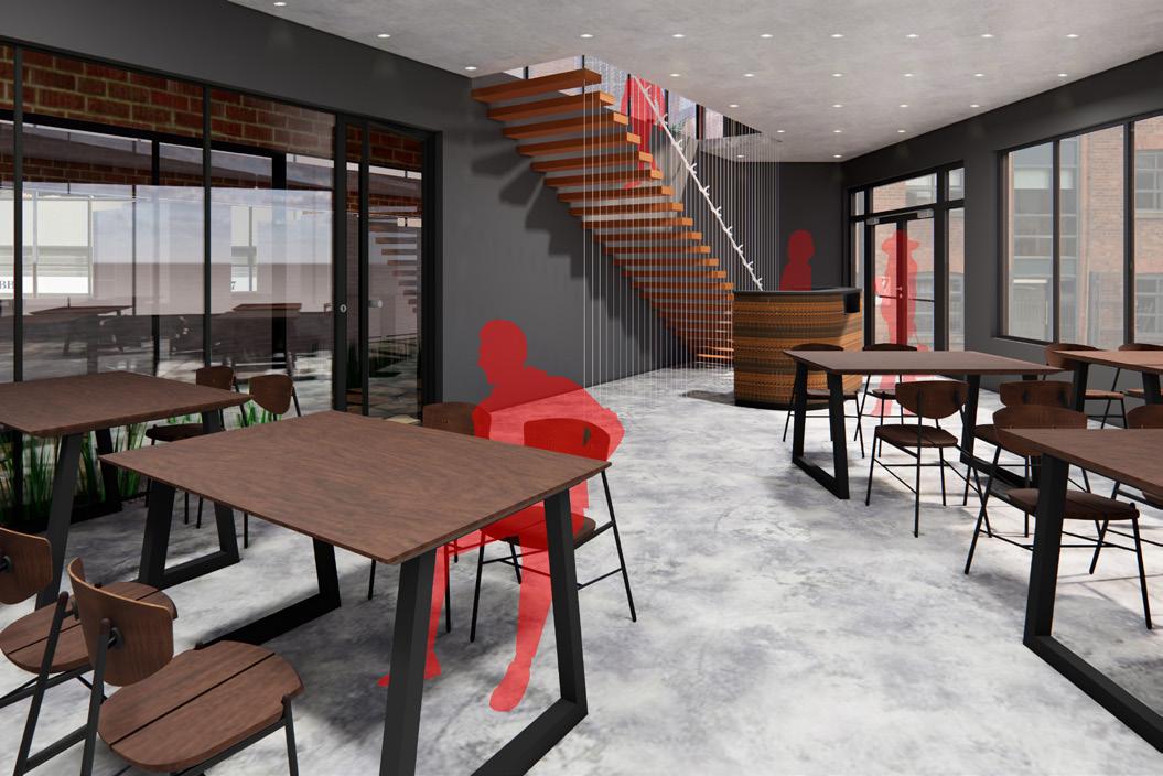 The work includes a set of 3D renders of the space, plans, furniture detail drawings and artworks for glazing deoration.