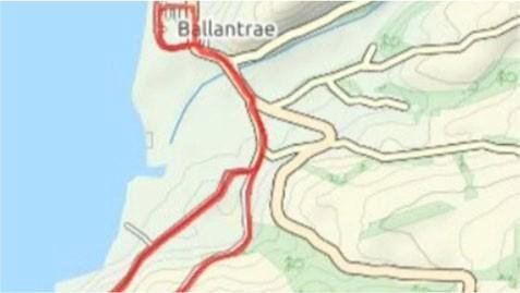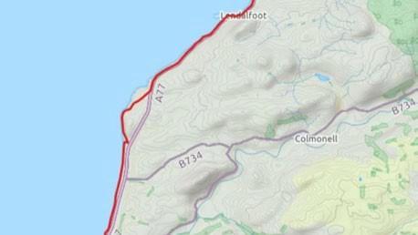 Stage 2: Follow the farm track past a layby to a gate leading to a further track heading uphill and parallel to the A77 below. Follow the easy track.