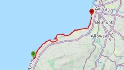 The second stage of the Ayrshire Coastal Path follows the sandy and rocky shoreline before running alongside the busy A77.