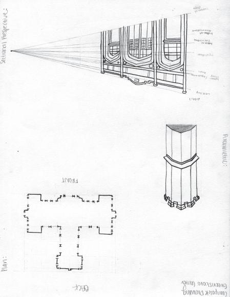 The design of the art gallery began with a given shape size and verbs that where used to formulate a shape. After those shapes were created they were then looked at in a section view. This was used to create different moments throughout the building. Once a shape was chosen, a program was added to the shape and different levels were created. Light was one of the main factors in the design of the art gallery.