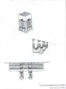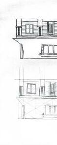 This is a drafted plan and elevation of The Luxembourg House. Architect: Richard Meier and Partners.