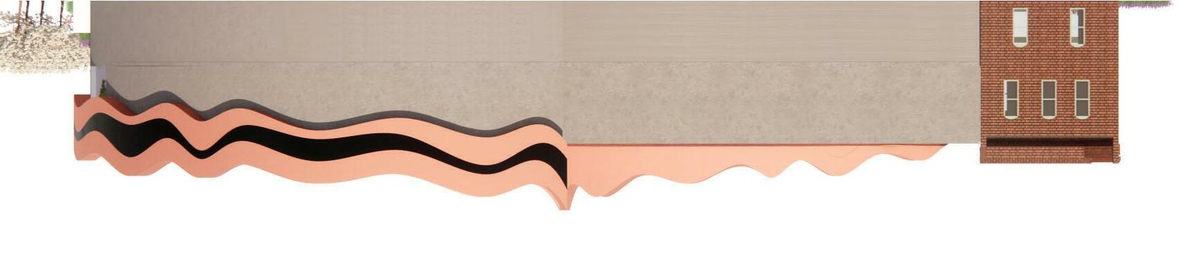 The design of “The Ripple” was created with the incorporation of natural curvatures to facilitate the movement of water down the surface of a wall. The intention inspired the name and also the shape, similar to the movement of water itself, and has other features with highlight the curves and uniqueness of this design. One of these features is the surface of the block itself, whose undulating curves create the opportunity for dynamic shadowing, showcasing the natural texture of the concrete and inviting illumination. The blocks interaction with organic elements also extends to weathering: rainfall interacts with concrete facades by washing over them, which can leave deposits of dirt as well as staining from accumulated chemicals on the continous channels down the block wall prevent dirt from accumulating while simultaneously welcoming the weathering from rainfall that could provide darker staining along the concave curves on the surface, further highlighting the “Ripple”.
