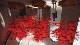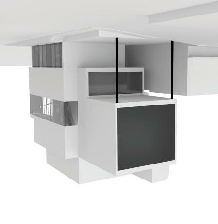 The First Rendering is an exterior view of the building. The second rendering is inside a typical unit. This is a view from the kitchen looking into the living room. The third rendering is of the interior of a unit, looking into the kitchen and living room area. The fourth rendering is of the main bedroom in a unit. The fifth rendering shows the opening of the center of the building that allows for circulation and an internal garden space. The sixth rendering is of the roof garden space. It features nice, green public spaces for the community.