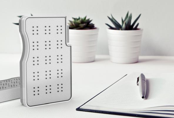 MESOG取自Message與Memo,說明了「訊息留存 」 的主要功能。為了幫助需要短時間紀錄簡短資訊的上班 族或學生而設計,將語言轉換為盲文,少了輸入的步驟, 簡化了記錄流程。