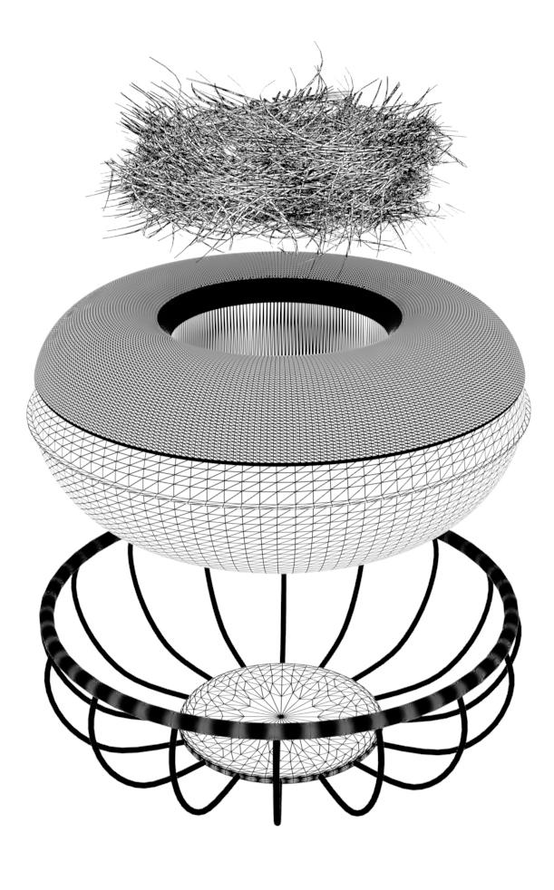 保育原生種畫眉 ——人工鳥巢設計 Solidworks / Maya 以因雜交而減少的台灣畫眉為基礎,結合 中藥治療與鳥巢,改善鳥兒的體質並提高 免疫力,建立「動物種族意識」之概念, 減少本土畫眉選擇外來種交配的理由,以 維護演化獨立特質與生物多樣性。