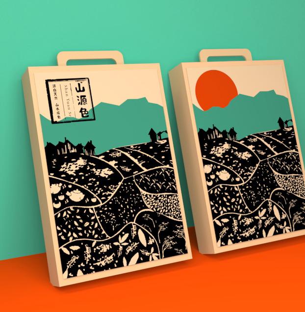 青綠色是取自山的青色、水的藍色,將中國傳統描繪山水 的用詞結合到包裝上。