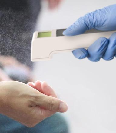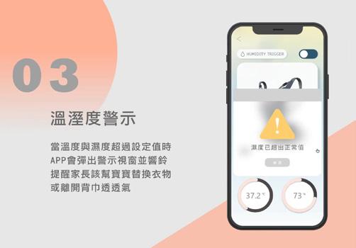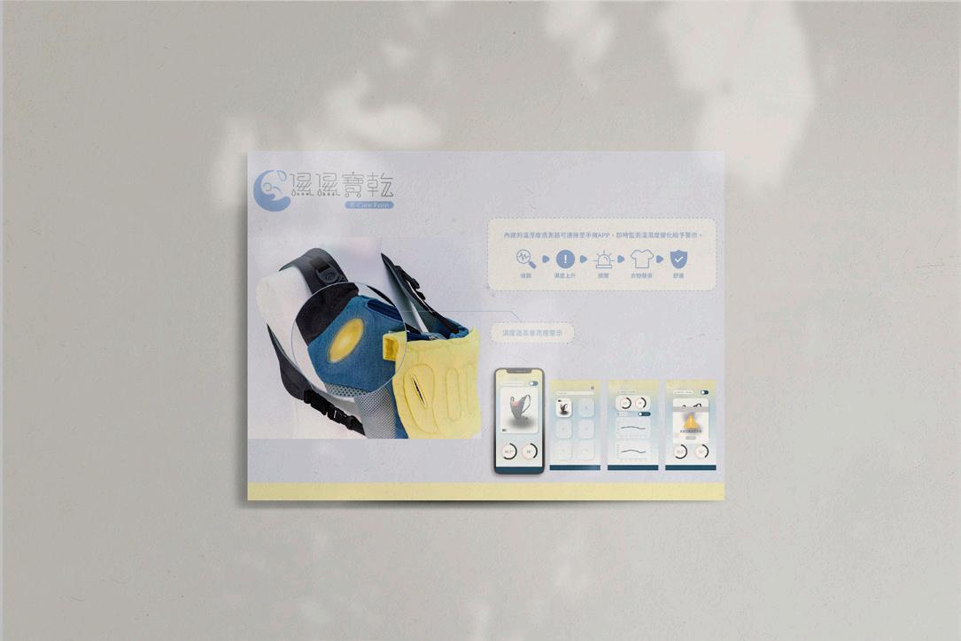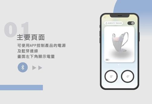 以本產品之特色「濕度感測」作為視覺重點, 連接下方的手型,整體像家長擁抱著孩子。 標準字則是以圓潤可愛的感覺進行設計。
