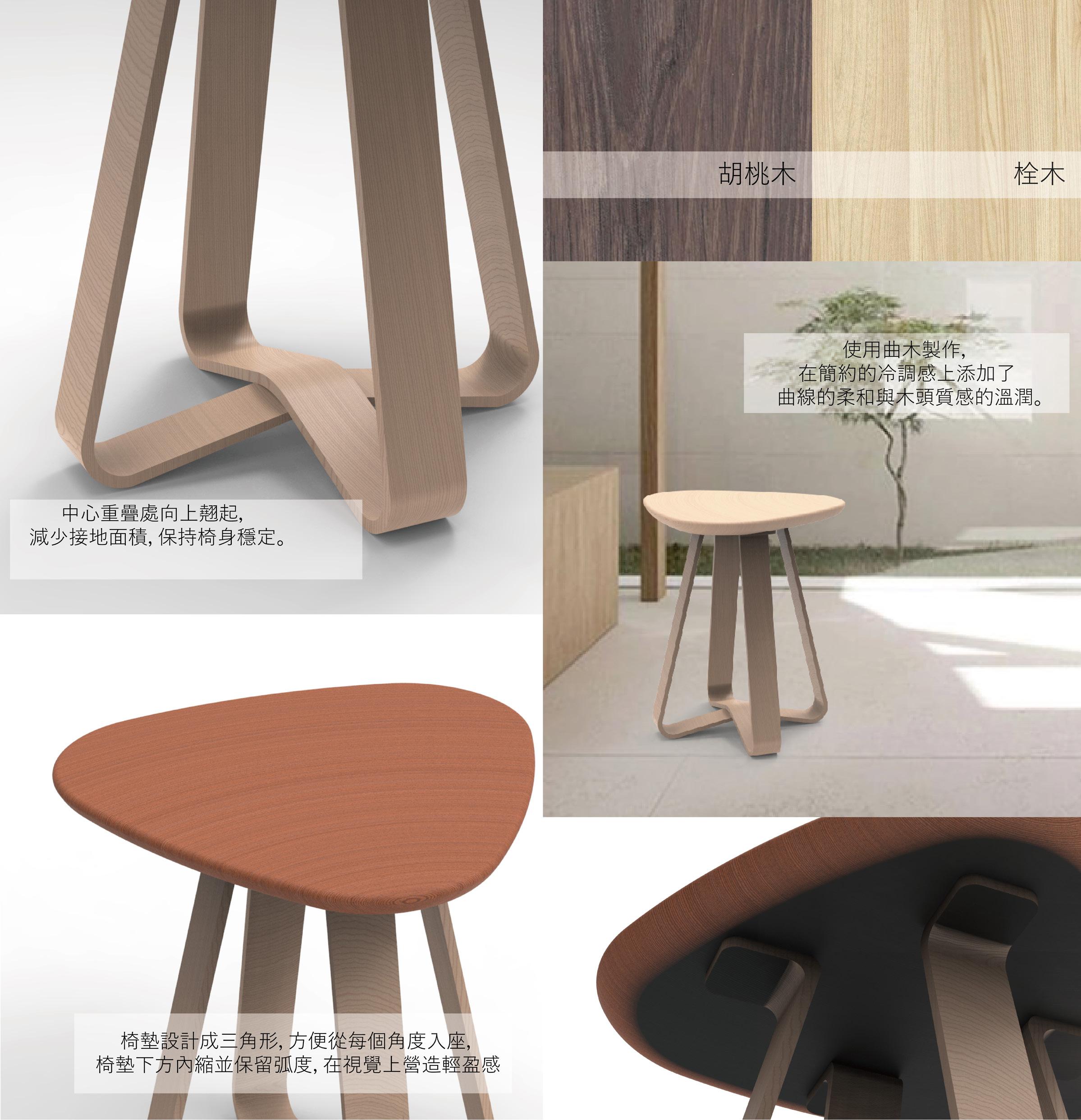 就學期間因課程安排,接觸了木工、陶藝、金工與模型製作,對 手作方面頗有信心,閒暇時也會做一些刺繡等的細手工,自認是 個細心的人。在2021年畢製進行的過程中,逐漸收攏發展方向, 往產品設計的領域發展,在團隊裡通常擔任前期發想與產品建模 的角色。