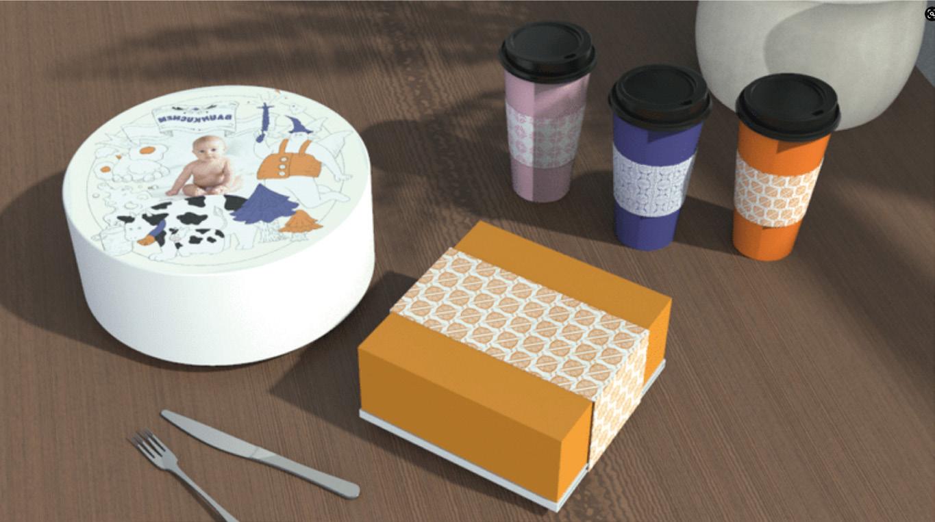 Solidworks / Keyshot / Illustrator 禮盒上沒有印刷文字,以透明包條印刷禮盒 命名和相關資訊,盒身漂亮的圖案可使消費 者留下紙盒作為置物收納用,或是承裝禮物 送給親朋好友,延長紙盒的生命!