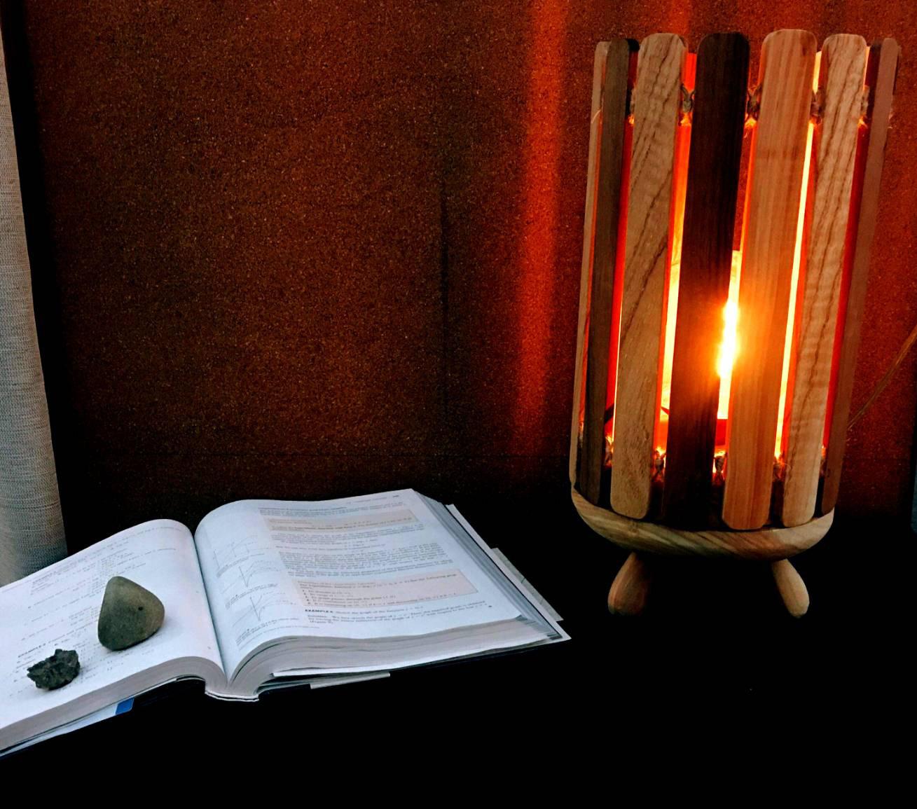 一款包含了 包含了台灣衫、山毛櫸、花梨木 等等 國產木製作而成的情境燈,燈罩部分可 拆卸作為墊片使用,鋪在沙發把手或雙腿上, 就可以擁有美好的下午茶時光。