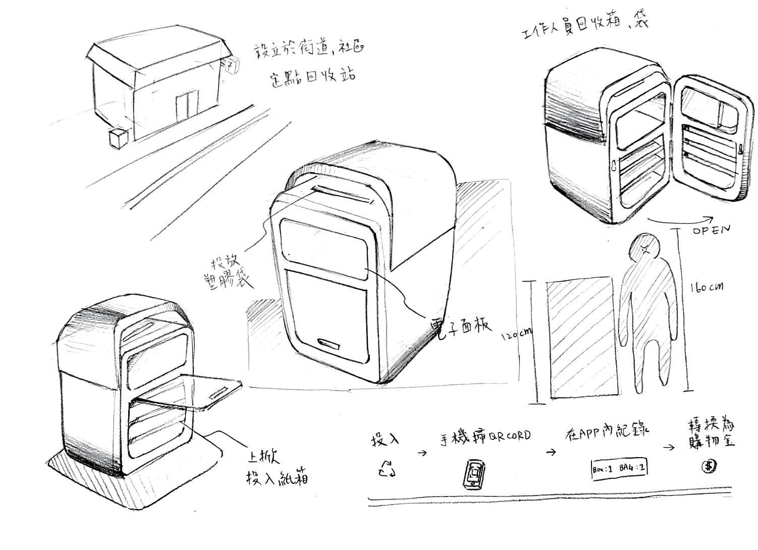 遮雨/造型 電子觸控面板 壓克力掀蓋 塑膠袋投入孔 紙箱投入孔 Idea Sketch BOX 回收站 BOX 回收紙箱 BAG 回收塑膠袋 31