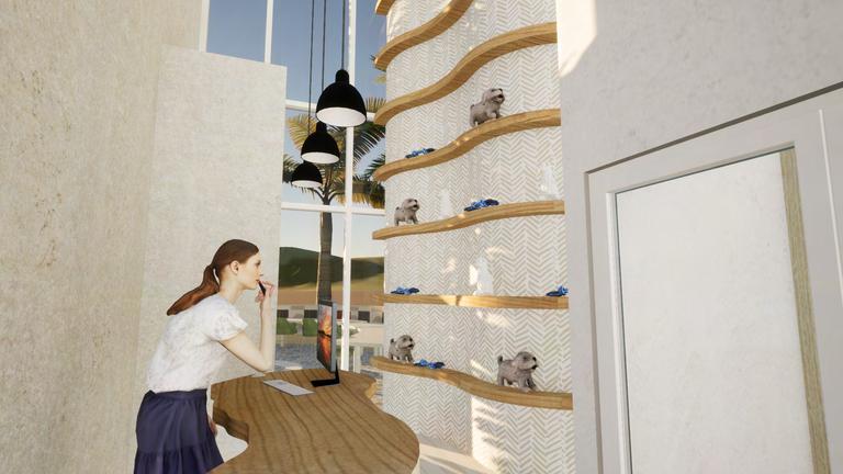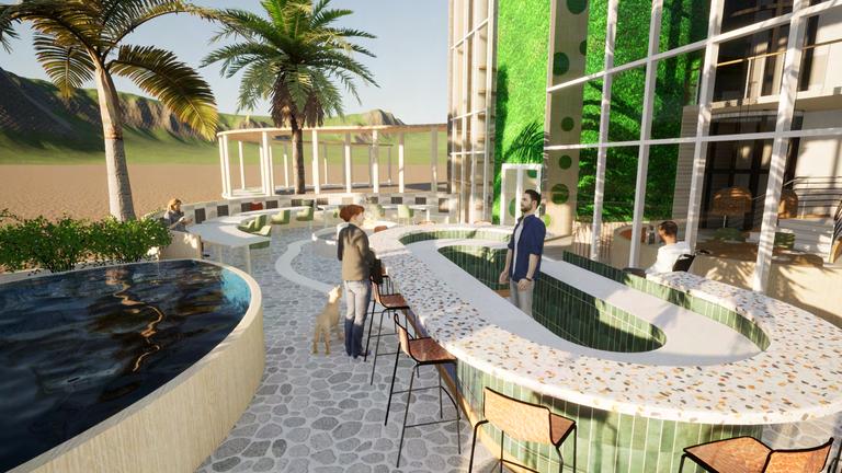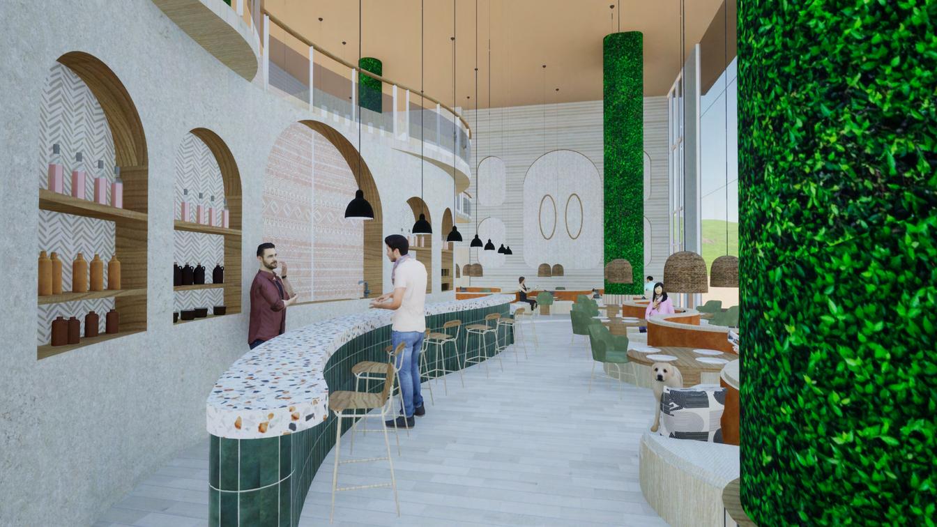 Thedesignconceptofthisrestaurantisfocusingontheconnectionbetweenhumanandtheircanine.This connectionistrulyunbreakable.Theconceptalsoinfluencesinclusivityasitprovidesaspaceforpeople withdisabilitiestobringtheirservicedogswiththem.Therestaurantdisplaysvariouspathwaysthatleadto differentareasthroughout,allowingeachspacetobeconnected.Thisconnectionallowsforaninvitingand relaxingstaycationexperiencewiththingsforyourpupstodowhilevisiting.