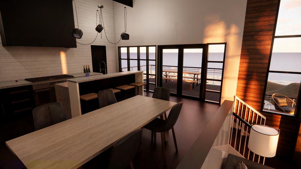 The conceptual approach for this design is inspired by the client's love for music. The site is an Art Decor building built-in 1929 that was originally constructed as a combined garment factory, warehouse, and head office for Tip Top Tailors. Therefore the design will be playing of contrast the roughness of the industrial storage facility against design elements inspired by music. Music plays a role because it’s moveable, it's flexible it plays with kinetic energy so people can use it in many different ways. There are different instrumental elements throughout the design of the space for example the piano bars are used as a wall design with wood slabs. In contrast with that I am also using the backdrop and design of the guardrails with metal mesh, and by using the rough pattern of stone displayed on the fireplace.