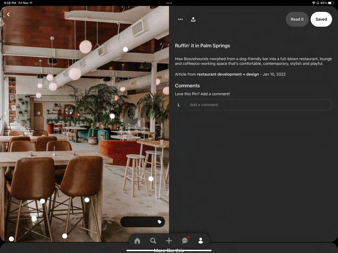 Thebrandis'Boozehounds'locatedinPalmSpringsCalifornia,providingauniqueexperiencewithpetfriendlydining.TheSanJacintomountainshaveinfluencedmid-centurydesignwithalaid-backCalifornian atmosphere.