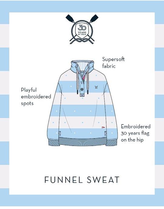 Offer terms and conditions: 20% off is valid on all full price items when shopping online, by phone and all stores, excluding concessions, outlets, Noble Isle, Salcombe Gin, Oceanographic magazine, LTA, Henley Royal Regatta, Golf and Williams Racing collection and gift cards. This offer not valid in conjunction with any other offer and cannot be applied retrospectively. Free postage and returns only valid for UK mainland addresses. Offer valid until 4th October 2022. To unsubscribe simply email customerservices@crewclothing.co.uk. Crew Clothing Company, 20 Lydden Rd, London, SW18 4LR. Company No. 326 5824 VAT No 896 1096 84 STORE LISTING All our stores stock most of our collection but some include exclusives like kidswear, footwear, golf and our collaborations with the likes Henley Royal Rega and Williams Racing. Scan the QR code to see. Abersoch ffinity Devon (outlet) ffinity Sta ord (outlet) Aldeburgh Ashford (outlet) Bath Beaconsfield Berkhamsted Beverley Bishops Stortford Boulevard (outlet) Braintree (outlet) Bracknell Bridgend (outlet) Bristol Bristol, Cribbs Causeway Bromley Bury Edmunds Cambridge Cannock (outlet) Canterbury Cardiff Cheltenham Cheshire Oaks (outlet) Chester Chichester Cirencester Cobham Dalton Park (outlet) Dartmouth Dorchester East Midlands (outlet) Edinburgh Exeter Farnham Glasgow Gloucester Quays (outlet) Guernsey Guildford Harrogate Henley Horsham Ilkley Inverness Jersey Kendal Kildare (outlet) Leamington Spa Lewes Lincoln Livingston (outlet) Ludlow Lymington Market Harborough Marlborough Morpeth Newbury Northallerton Norwich O (outlet) Padstow Perth Petersfield Portsmouth (outlet) Reigate Richmond Ringwood Sa ron Walden Salcombe Salford Quays (outlet) Salisbury Sevenoaks Sherborne Shrewsbury Sidmouth Skipton Solihull Southampton Southwold Spalding St Albans St Andrews St David’s St. Ives Stamford Stratford-upon-Avon Street (outlet) Swindon (outlet) Taunton Tavistock Tenterden Thame Torquay (Hoopers) Totnes Truro Tunbridge Wells (Hoopers) Wilmslow Wimborne Minster Winchester Windsor Witney York (outlet) CREW SIZE CHART See our sizing guide online for further information crewclothing.com MEN’S XS XL XXL XXXL Chest 35-37” 37-39” 39-41” 41-43” 44-46” 47-49” 49-51” Collar 15” 16” 16.5” 17” 17.5” 18.5” 19” Waist 29-31” 31-33” 33-35” 35-37” 37-39” 39-41” 41-43” Belt Sizing 31-35” 31-35” 33-37” 37-40” WOMEN’S 6 10 12 14 16 18 Size XXS XS XS/S S/M M/L L/XL XL Bust 32.5” 34” 35.5” 37.5” 39” 41” 44” Waist 25” 26.5” 28” 30” 32” 34” 36.5” Belt Sizing S/M S/M M/L L MEN’S SHOES EU 41 42 43 44 45 46 UK 11.5 WOMEN’S SHOES EU 36 37 38 39 40 41 UK 6 Delivery is free with our Click Collect service, delivered in 1-2 days to store, or to another UK address on our standard delivery service in 3-5 working days. you need faster, we o er Express Delivery for £5.95. Returns are free using the pre-printed returns label included in your order, or you can return any unwanted items to one our stores. More details on our delivery and returns services, and our full terms and conditions can be found on our website. Customer Service You can contact our Customer Service team on 0333 121 1993 between 9am and 6pm in the week, and between 9am and 5pm at weekends. You can also email us at customerservices@crewclothing.co.uk. DELIVERY & RETURNS WAYS TO SHOP Online: crewclothing.com Free Click & Collect service Phone: 0333 121 1993 Order lines are open pm Mon-Fri, pm weekends Stores: Find your nearest store at crewclothing.co.uk/stores. With so much to choose from, we can’t always fit everything in one place. Shop the full collection online and enjoy delivery to your doorstep, Click & Collect to your local store or order with our friendly shop floor team and get free next day delivery. ☎ free delivery returns Use code: TYPE in store onlin O er expires th October 2022 WIN a day at Williams Racing THE PRIZE: Two chances to win a pair of tickets to the factory race day at Williams Racing HQ Pit crew shirt signed by Alex Albon and Nicholas Latifi worth of Crew x Williams Racing A unique opportunity to step inside the Williams Experience Centre to watch the Abu Dhabi Grand Prix no passport needed. ENTER NOW crewclothing.co.uk/williams Competition closes on the October T&Cs apply. WILLIAMS X CREW