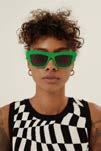 • Intrecciato woven leather, a subtle triangle logo, focus on iconic green color