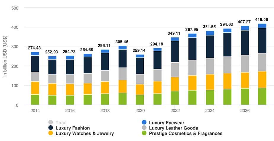 Luxury Goods - Worldwide. (n.d.). Retrieved May 18, 2022, from https://0-www-statista-com.library.scad.edu/ outlook/cmo/luxury-goods/worldwide