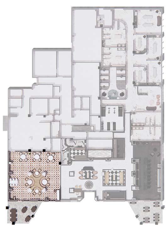 / Placed near large window space with perimeter circulation that offers furniture for lounge or change of workspace