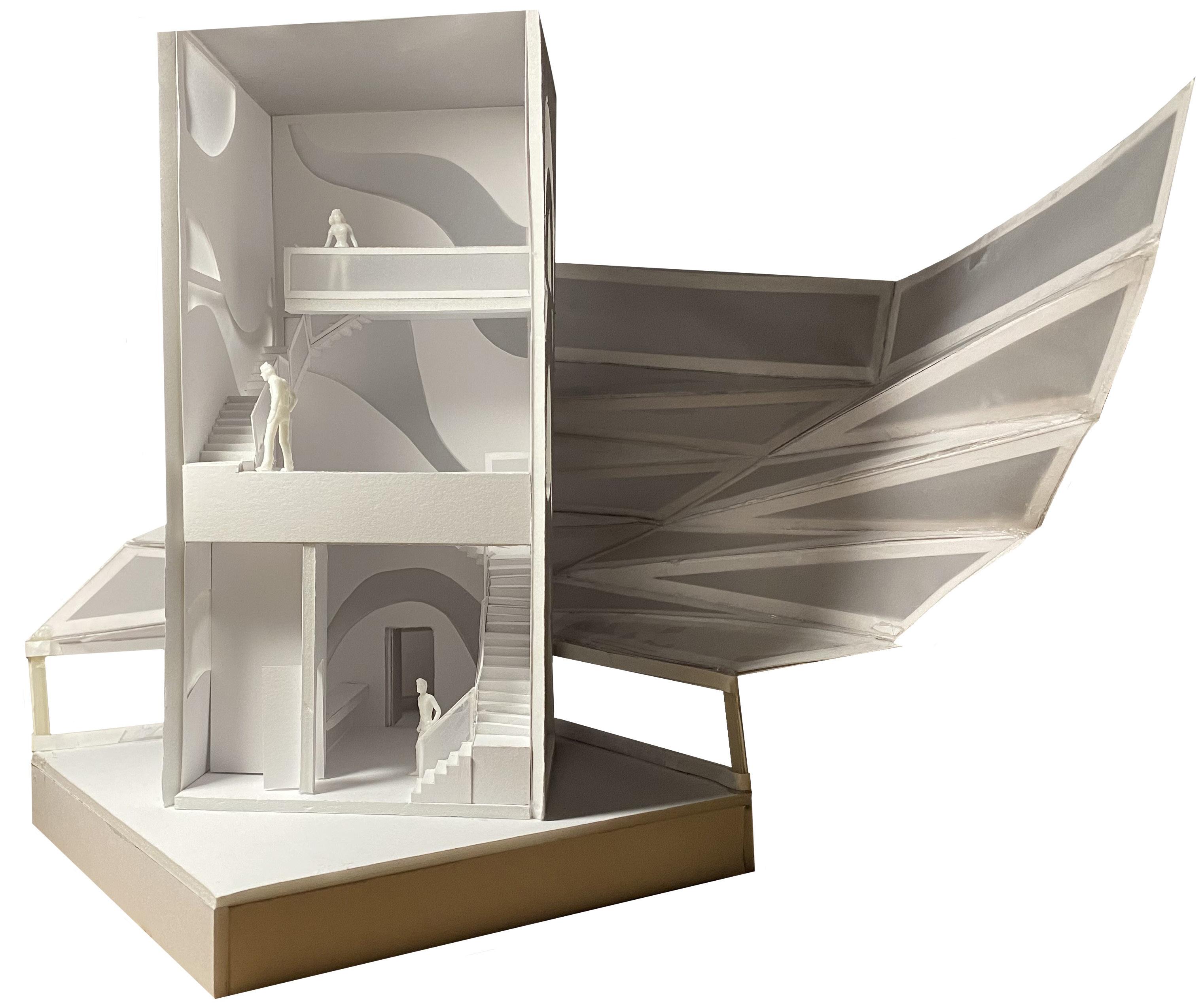 Physical Model (Scale: ¼”=1’-0”) Materials include foam core board, bristol paper, trace paper, and clear sheet plastic.
