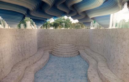The design this chapel is based on Dripping Spring’s most unique and celebrated resource, water, and its symbolic similarities with love. As water runs freely, deeply, and naturally, so too does the love that bonds marriage. This idea is appropriate for the client be cause the design merges two fundamental elements which relate to the site as well as the occasion. The site will be abstractly represented in the space, reflecting the majestic and natural beauty of Dripping Springs’ environment. To express this analogy between water, love, and the relationship between the ceremonial and natural elements, organic lines, natural flow, and symbolic imagery will be featured throughout space.