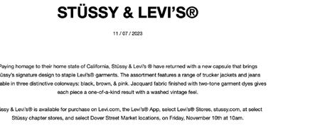 Mbacke, M. (2023) Stussy: A case study in pioneering streetwear, Gabe Clothing. Available at: https://gabeclothing.ca/blogs/building-a-clothing-brand/stussy-case-study (Accessed: 24 January 2024).