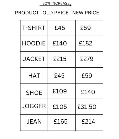 When examining Stussy’s product range the majority of items fall within the price range of £13-£200, with a median price point of £140 (Refer to fig 19).