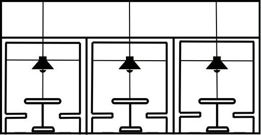 Space dividers to prevent users from bumping into each other while providing storage and a vertical surface to hang notices or instructions on