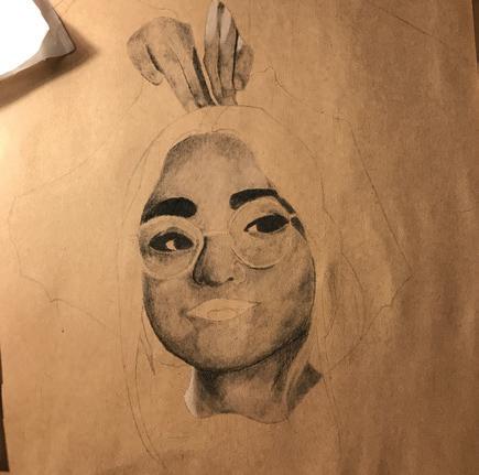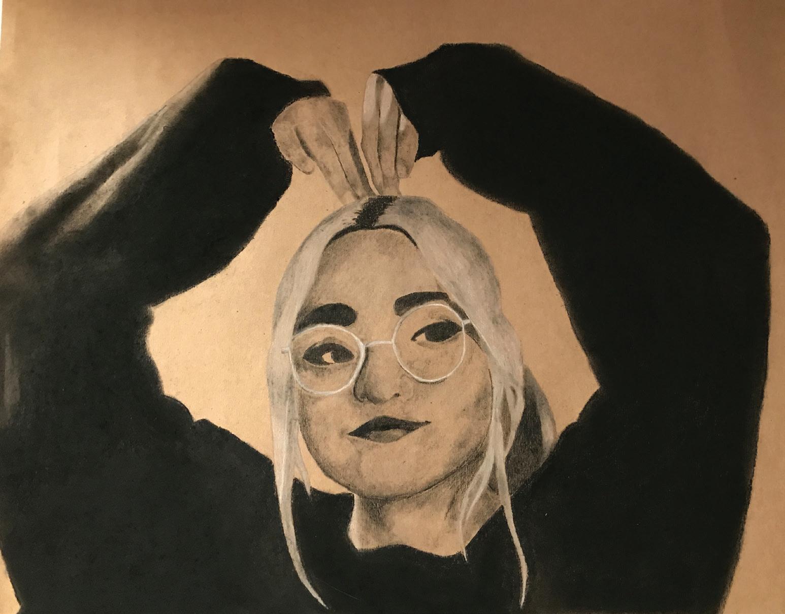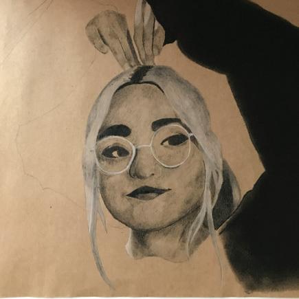This piece was created with charcoal on toned paper; it features a portrait of YouTuber ‘Nihachu’ and follows a reference image to create an enlarged final product.