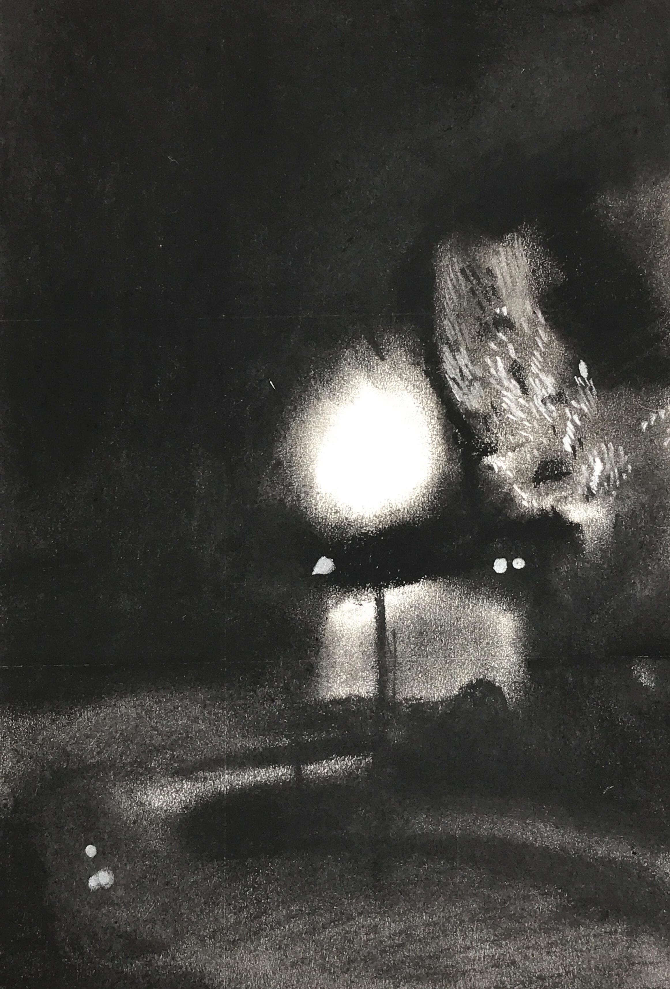 Although charcoal is my favorite medium, I’ve never enjoyed getting my hands dirty. However, for this piece, I wanted to overcome those feelings and allow myself to create a mess. When blending the charcoal, I opted to use my fingers and pushed myself to work without worrying about neatness. Of course, this freedom was confined to the large, shaded area, but it allowed me to loosen up a bit on my perfectionist nature.