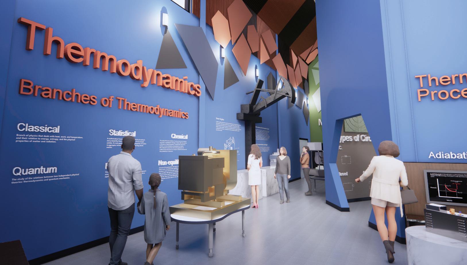 The Pettinger Museum expands the Pettinger Engine Collection into a more hands-on learning experience for mechanical engineering. This new gallery aims to connect the UNT Discovery Park campus, where the gallery resides, and the main Denton campus. Further, the exhibition strives to encourage incoming students to join the college by introducing them to concepts and fields of study they may have not considered before. Thus, the exhibit features easy to understand infographics and hands-on, interactive elements to appeal to those with little knowledge of the subjects presented, while still offering something to those who are familiar with the concepts.