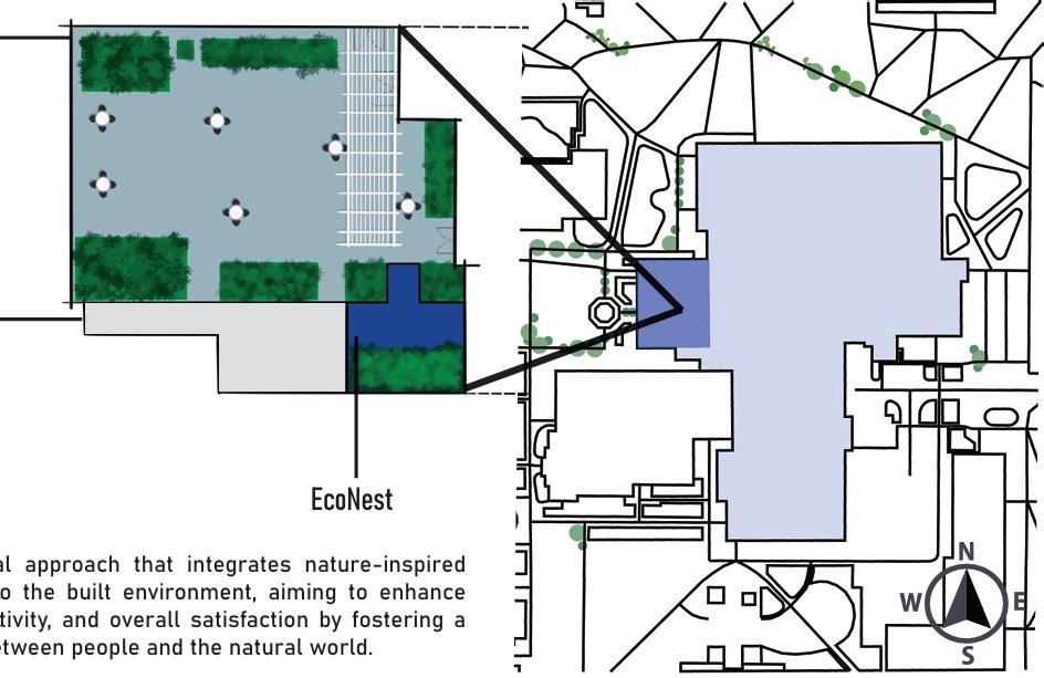 Ascending above the chaos of campus life and shedding the stressors of a demanding commute, students arrive at the third floor of the Student Union. As they step onto the deck, an instant wave of tranquility envelops them, revealing the hidden gem seamlessly nestled into the rooftop; the EcoNest. Our space transforms the overwhelming dynamic pace of both the physical and mental realms into serene stillness while still remaining conveniently integrated into the heart of University life.