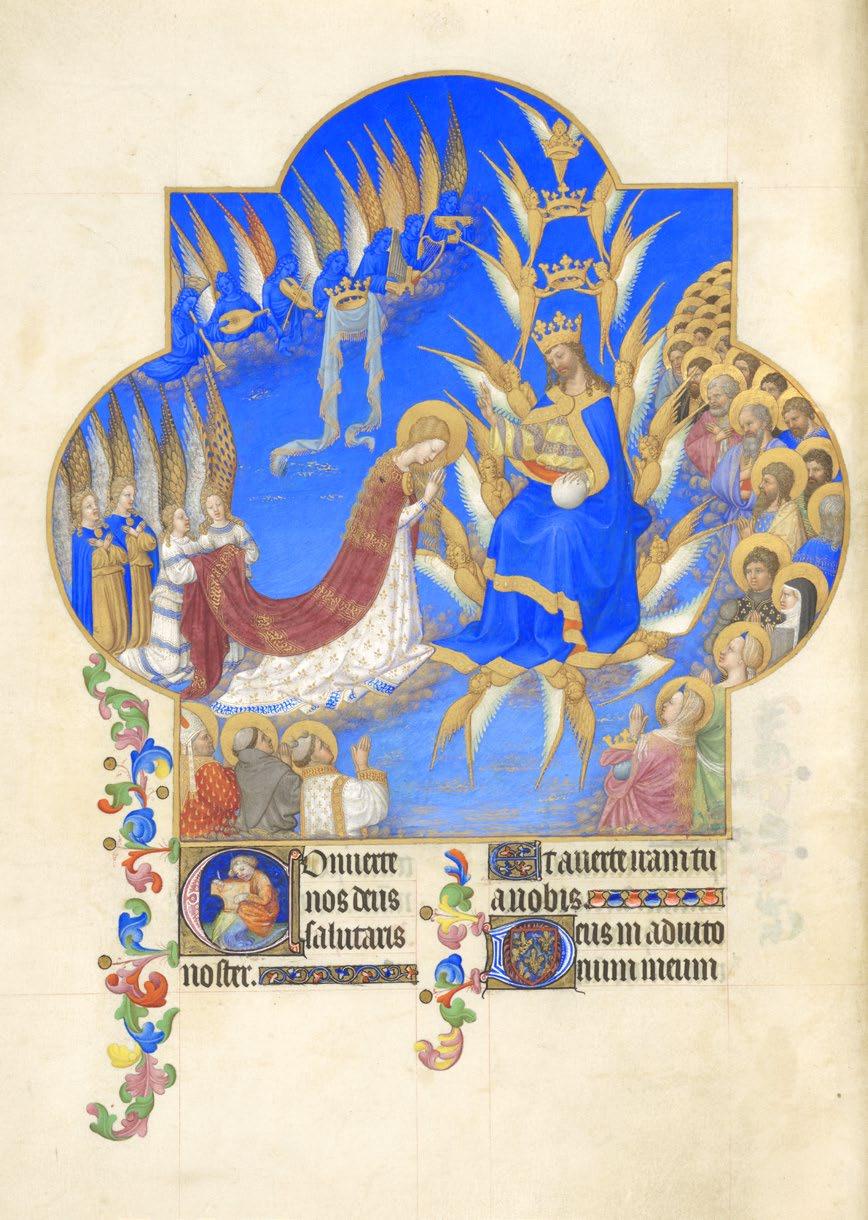 The Très Riches Heures du Duc de Berry is het best bewaarde en een van de meest magnifieke, exquisiet gedetailleerde manuscripten van de vijftiende eeuw. handgemaakt rond 1410 voor de hertog van berry, een prominente figuur in frankrijk, staat dit getijdenboek bekend als een meesterwerk van de internationale gotiek. het combineert intrigerend naturalisme met fantasierijke, levendige composities op 206 perkamenten pagina’s. het beroemde kalenderdeel, gecreëerd door de gebroeders Van lymborch, bevat adembenemende maandelijkse scènes die een voorbode zijn van het werk van Jan van eyck en de uitmuntende schilders van de vijftiende eeuw in de Zuidelijke nederlanden.