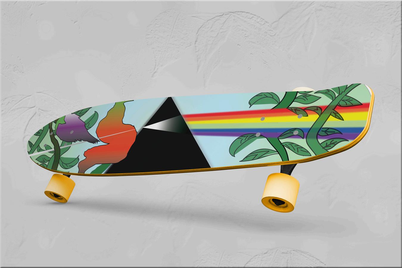 Theskateboarddesignwasinspiredbythe PinkFloydsong-TheDarkSideOfTheMoon