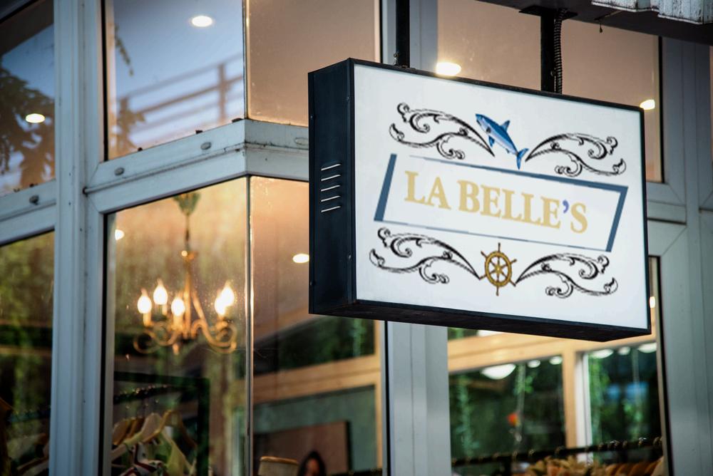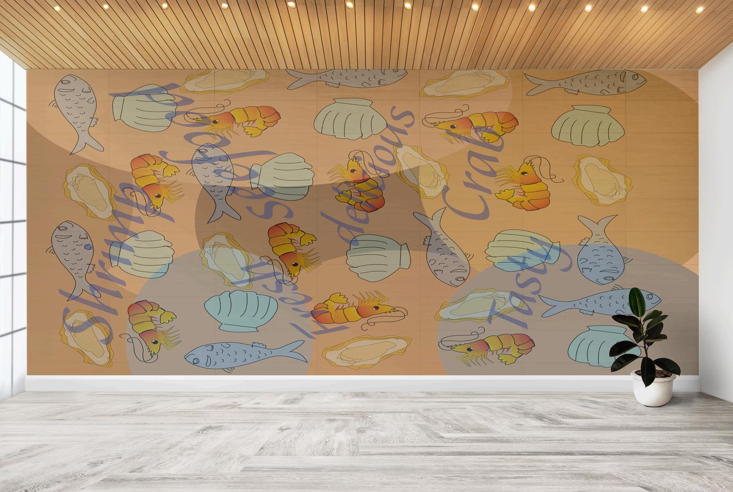 Logodesignforaseafoodrestaurantwithmenuandbusinesscardbackground