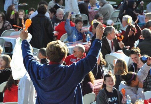 ERIC and JAN PATTERSON HAAS ’79 brought 17 of the 21 family members to attend Hanover (and some friends) to Homecoming this year! Back row (from left to right): VANCE PATTERSON ’72, MARy JO CODy PATTERSON ’75, ALAN HAAS ’05, DON uNGER ’71, MARTy PATTERSON uNGER ’70, ERIC HAAS, BRuCE BARKHAu ’61, RyAN HAAS ’07, FAyE HAAS WENDEL ’80, KIM HAMILTON ’92, KyLE CLARKE ’15, JO ANN IMBLER CLARKE ’79, SAMI PATTERSON ’01 and CODy PATTERSON ’01 Front row (from left to right): MEGAN PATTERSON ’04, ERIN HAAS ’12, JAN PATTERSON HAAS ’79, MARGIE BERTRAM BARKHAu ’61 and MARy BARKHAu HAAS ’53