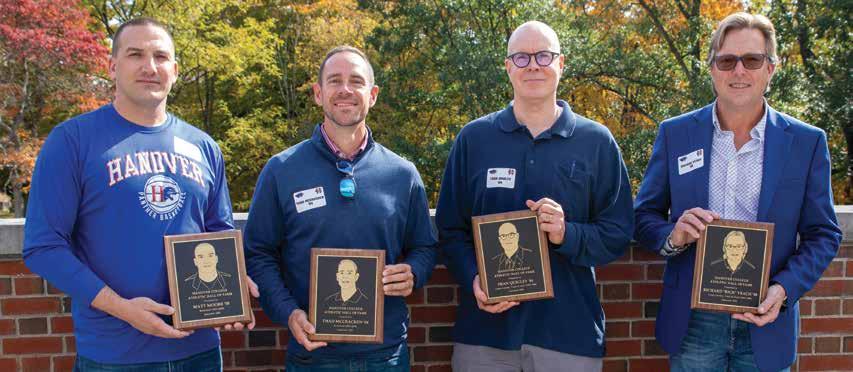 The Hanover Athletic Hall of Fame inducted (l-r) Matt Moore ’05, Thad McCracken ’04, Fran Quigley ’84 and Richard Veach ’88 during a special ceremony Oct. 22 as part of the College’s Hall of Fame Day. Moore and McCracken were key members of Hanover’s basketball program. Quigley and Veach were standouts for the Panthers’ cross country and track and field squads.