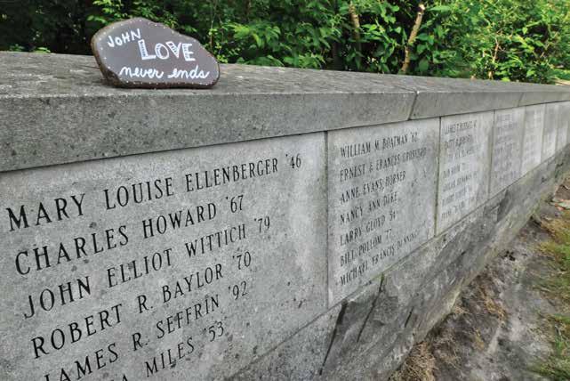 In 1995, members of the Class of 1967 conceived the idea of a memorial wall located on Hanover’s campus. Envisioning a place where the names of Hanover friends and alumni could be remembered, this landmark would also provide a lasting way to enhance the College’s beauty. The Memorial Wall and Garden, located near the president’s home, stretches from the entrance to the Daryl R. Karns Natural History Trails toward the Levett Career Center. Adjacent to the limestone wall is a decorative garden that encircles the historic Baldridge Columns, which mark the original entrance gate to the College. A Hanoverian, family member or friend can be honored with their name on the wall for a gift of $500. This provides for the engraving, as well as maintenance of the wall and garden area. For more information on how to have the name of a friend or loved one added to the wall, contact Courtney Richmond at 812.866.7111 or richmond@hanover.edu.