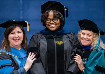 Alexandra Carmen Menendez DPT ’25 delivered the student address. Bradley Johnson DPT ’25, Reese VanDevender DPT ’25 and Latrell Wade DPT ’25 each earned the Academic Excellence Award. Wade also received the Clinical Excellence Award. Leanne Schellhorn DPT ’25 was awarded the Student Impact Award. Trent Gabriel DPT ’25 earned the Service Excellence Award.