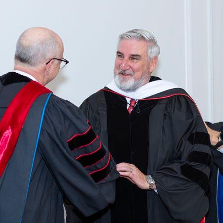 Former Indiana Gov. Eric Holcomb ’90 was awarded an honorary Doctor of Humane Letters degree during an Oct. 17 ceremony in the J. Graham Brown Campus Center. The conferral was held as part of Hanover’s 98th-annual homecoming celebration.