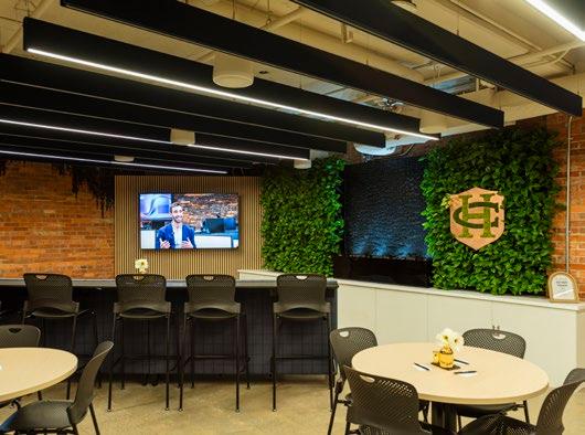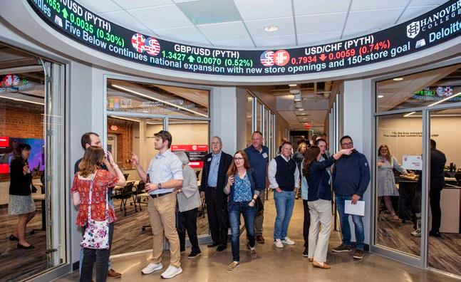 Designed by SPGB Architects, LLC (SPGB), the modern 8,000-square-foot, glass-walled facility encompasses Parker Auditorium’s entire lower level. The space includes experiencespecific classrooms modeled after board rooms, modular workstations and conference rooms. A real-time, scrolling stock ticker and newsfeed swirls around the centrally located rotunda between the classrooms. Dedicated areas are also available for graphic design, social media and audio-visual recording.